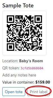 You can print labels when creating a Tote or anytime thereafter. We recommend waiting to print until AFTER you have entered the contents so the contents will appear on your label.